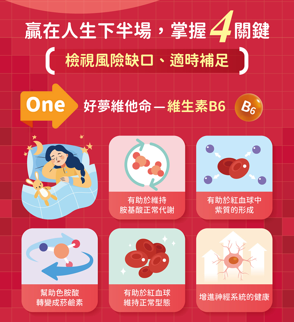 - 含有維生素B6有助於紅血球維持正常型態及增進神經系統的健康