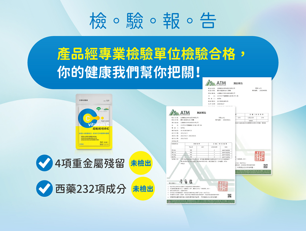 - 卡姆果萃取物(卡姆果萃取物、麥芽糊精)、PUREWAY-C®複方維生素C〔抗壞血酸(維生素C)、柑橘萃取物、米糠粉〕、柑橘萃取物(含柑橘生物類黃酮)(柑橘萃取物、麥芽糊精)、維生素E(乙酸dl-α-生育醇酯、乾燥葡萄糖漿、辛烯基丁二酸鈉澱粉、二氧化矽)、二氧化矽、硬脂酸鎂